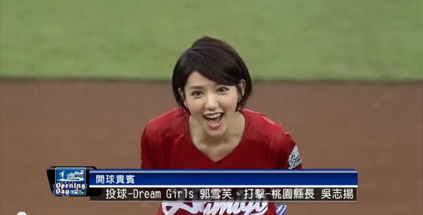 過去中職開幕戰大都請官員來開球,這次請來號稱史上最美的開幕戰開球貴賓-郭雪芙(雖然也有豆花妹等多位正妹曾為中職開球,但能擔綱開幕戰實在不容易)。她一開始緊張得一直大口呼氣,不過還是順利將球投進了捕手手套。