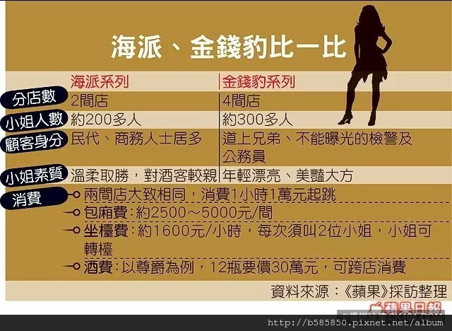 傳說中台灣最高檔的酒店是---金錢豹。但是,提到台中,當然也要提到海派...